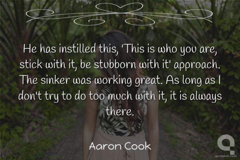 He has instilled this, 'This is who you are, stick with it, be stubborn with it' approach. The sinker was working great. As long as I don't try to do too much with it, it is always there. Aaron Cook