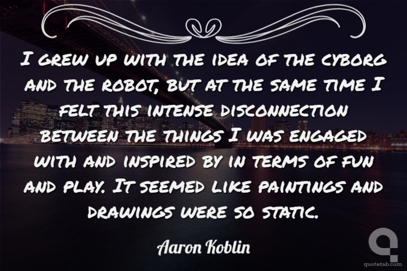 I grew up with the idea of the cyborg and the robot, but at the same time I felt this intense disconnection between the things I was engaged with and inspired by in terms of fun and play. It seemed like paintings and drawings were so static. Aaron Koblin