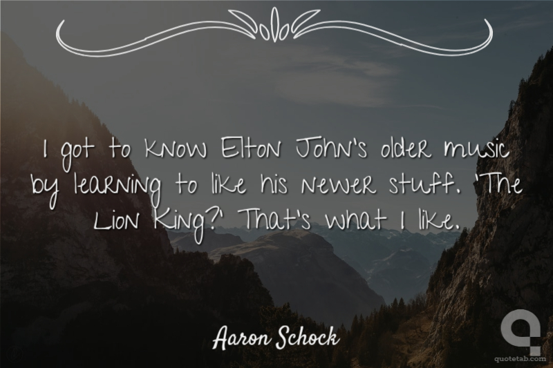 I got to know Elton John's older music by learning to like his newer stuff. 'The Lion King?' That's what I like. Aaron Schock