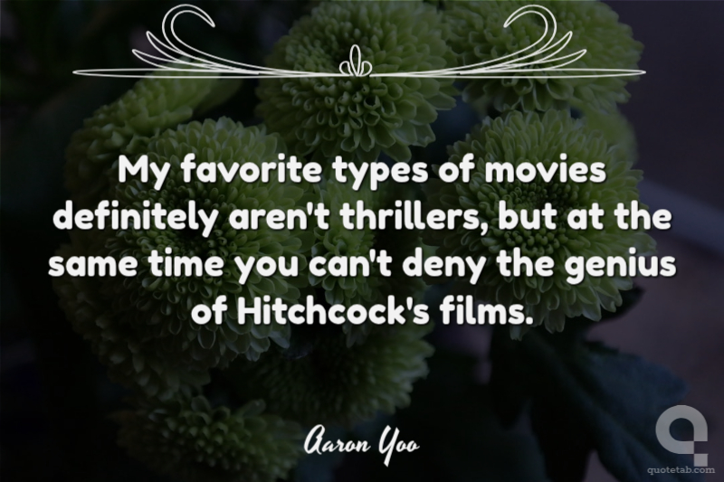 My favorite types of movies definitely aren't thrillers, but at the same time you can't deny the genius of Hitchcock's films. Aaron Yoo