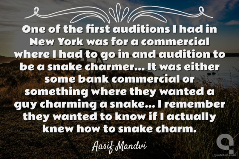 One of the first auditions I had in New York was for a commercial where I had to go in and audition to be a snake charmer... It was either some bank commercial or something where they wanted a guy charming a snake... I remember they wanted to know if I actually knew how to snake charm. Aasif Mandvi