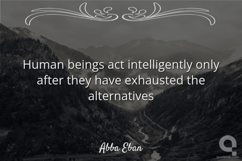 Human beings act intelligently only after they have exhausted the alternatives Abba Eban