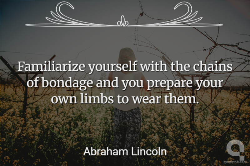 Familiarize yourself with the chains of bondage and you prepare your own limbs to wear them. Abraham Lincoln