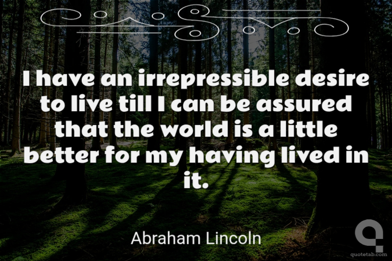 I have an irrepressible desire to live till I can be assured that the world is a little better for my having lived in it. Abraham Lincoln