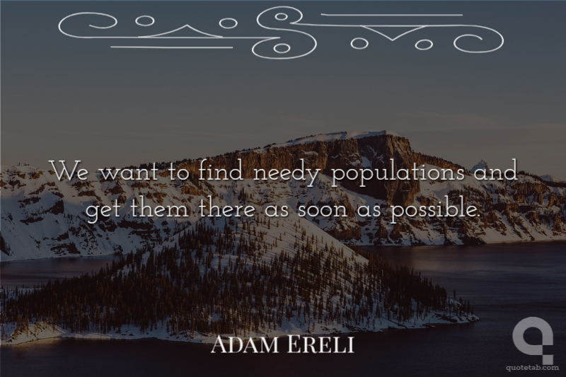 We want to find needy populations and get them there as soon as possible. Adam Ereli