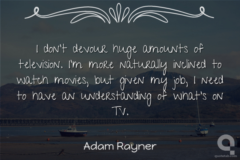 I don't devour huge amounts of television. I'm more naturally inclined to watch movies, but given my job, I need to have an understanding of what's on TV. Adam Rayner