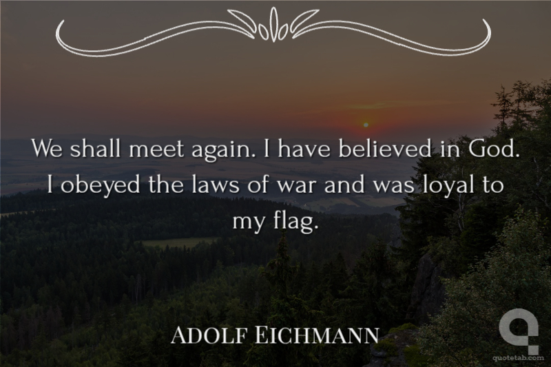 We shall meet again. I have believed in God. I obeyed the laws of war and was loyal to my flag. Adolf Eichmann