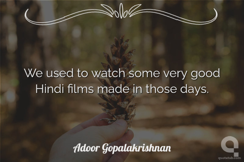 We used to watch some very good Hindi films made in those days. Adoor Gopalakrishnan