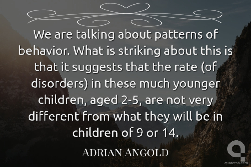 We are talking about patterns of behavior. What is striking about this is that it suggests that the rate (of disorders) in these much younger children, aged 2-5, are not very different from what they will be in children of 9 or 14. Adrian Angold