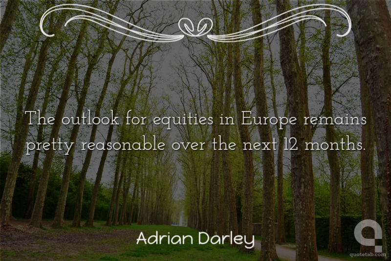 The outlook for equities in Europe remains pretty reasonable over the next 12 months. Adrian Darley