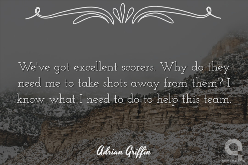 We've got excellent scorers. Why do they need me to take shots away from them? I know what I need to do to help this team. Adrian Griffin