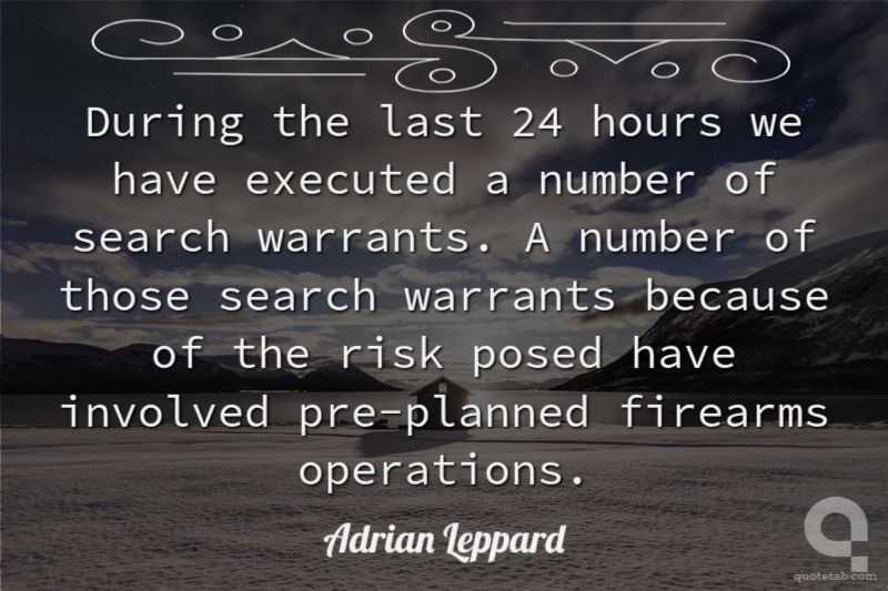During the last 24 hours we have executed a number of search warrants. A number of those search warrants because of the risk posed have involved pre-planned firearms operations. Adrian Leppard