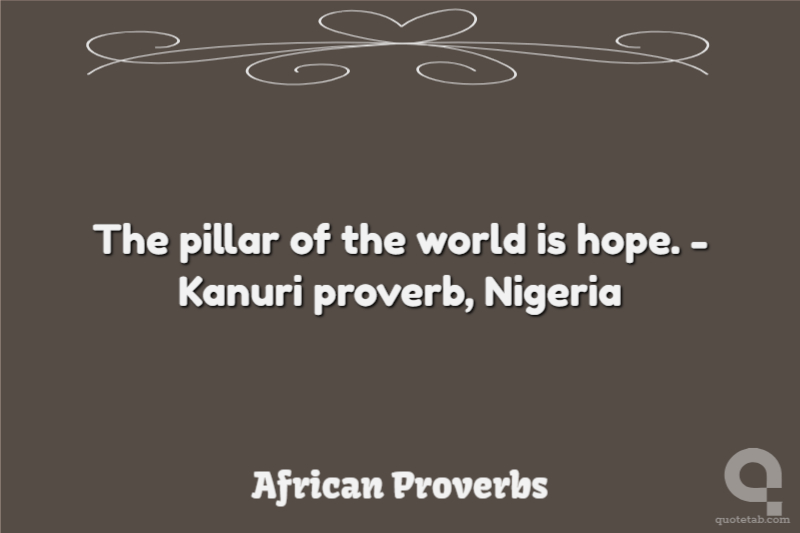 The pillar of the world is hope. - Kanuri proverb, Nigeria African Proverbs