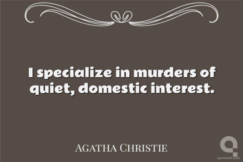 I specialize in murders of quiet, domestic interest. Agatha Christie