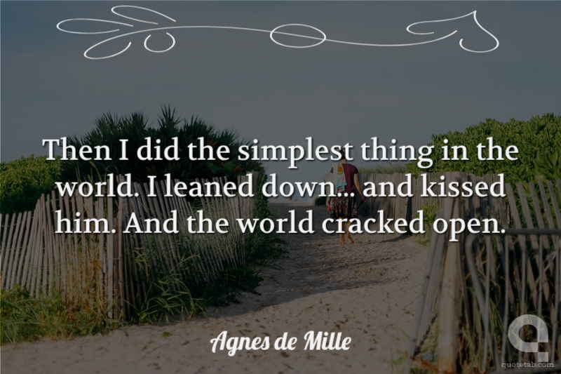 Then I did the simplest thing in the world. I leaned down... and kissed him. And the world cracked open. Agnes de Mille