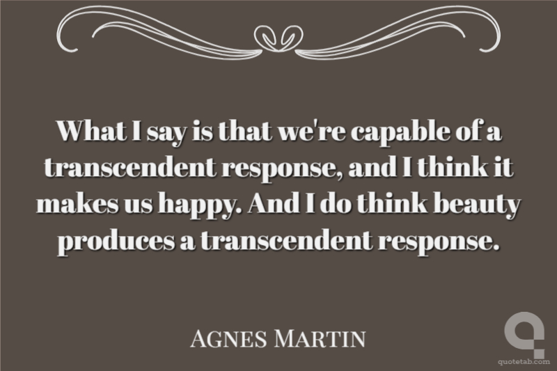 What I say is that we're capable of a transcendent response, and I think it makes us happy. And I do think beauty produces a transcendent response. Agnes Martin