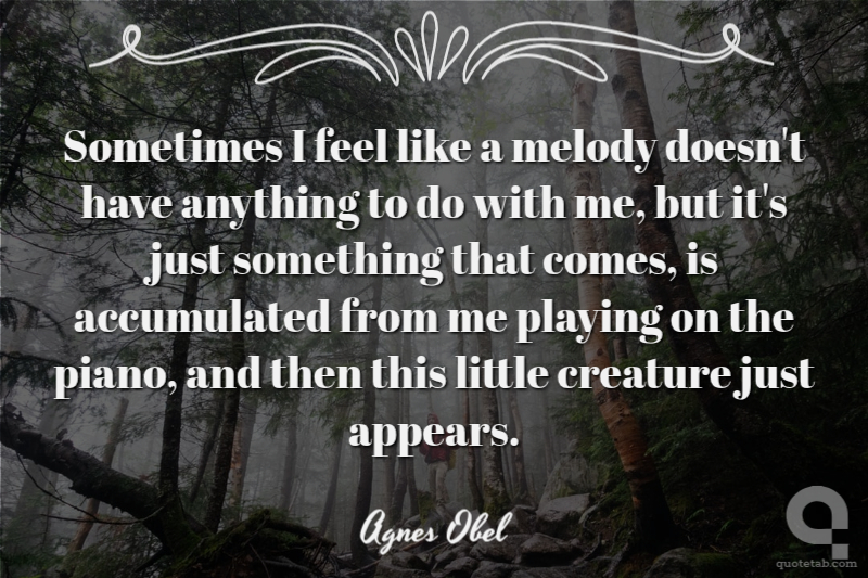 Sometimes I feel like a melody doesn't have anything to do with me, but it's just something that comes, is accumulated from me playing on the piano, and then this little creature just appears. Agnes Obel