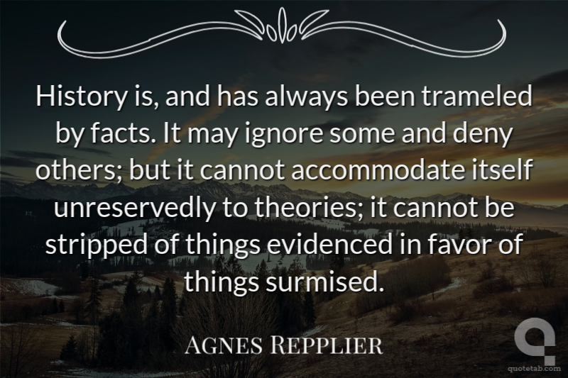 History is, and has always been trameled by facts. It may ignore some and deny others; but it cannot accommodate itself unreservedly to theories; it cannot be stripped of things evidenced in favor of things surmised. Agnes Repplier