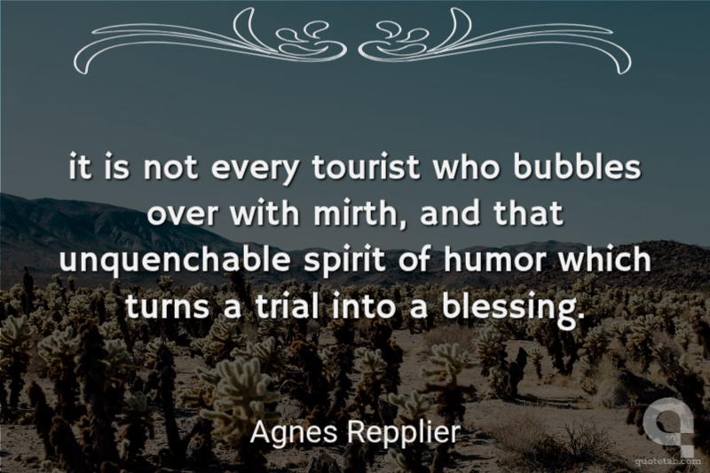 it is not every tourist who bubbles over with mirth, and that unquenchable spirit of humor which turns a trial into a blessing. Agnes Repplier