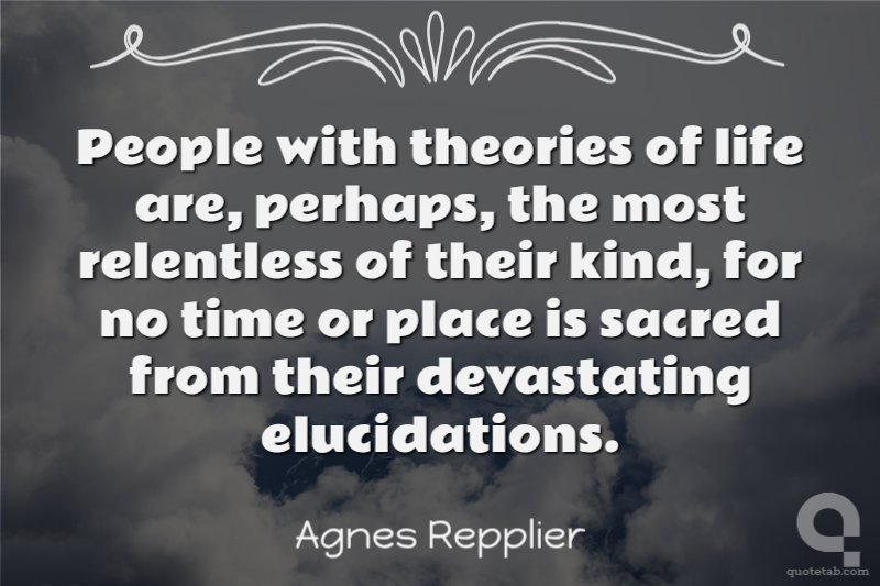 People with theories of life are, perhaps, the most relentless of their kind, for no time or place is sacred from their devastating elucidations. Agnes Repplier