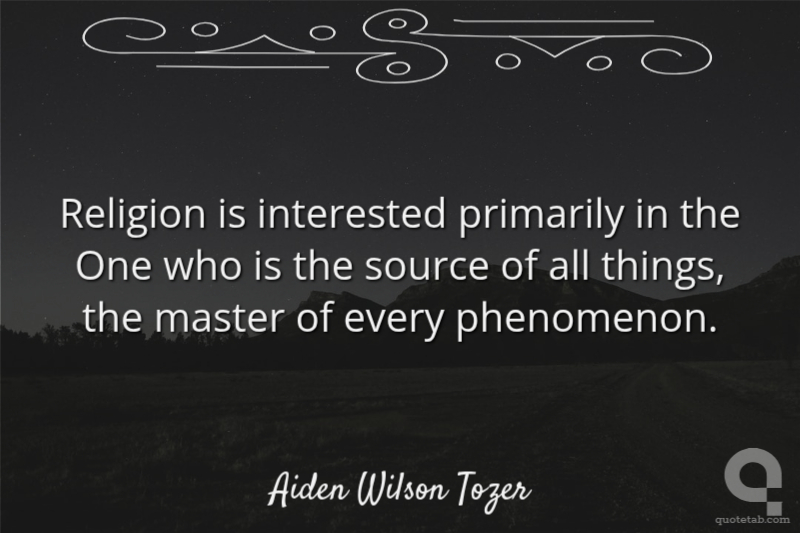 Religion is interested primarily in the One who is the source of all things, the master of every phenomenon. Aiden Wilson Tozer