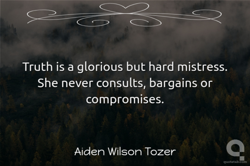Truth is a glorious but hard mistress. She never consults, bargains or compromises. Aiden Wilson Tozer