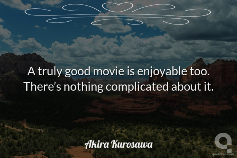 A truly good movie is enjoyable too. There’s nothing complicated about it. Akira Kurosawa