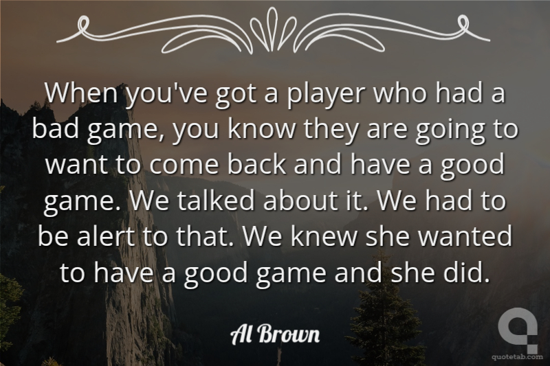 When you've got a player who had a bad game, you know they are going to want to come back and have a good game. We talked about it. We had to be alert to that. We knew she wanted to have a good game and she did. Al Brown