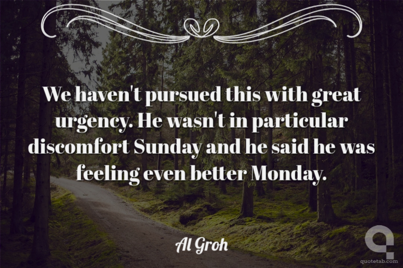 We haven't pursued this with great urgency. He wasn't in particular discomfort Sunday and he said he was feeling even better Monday. Al Groh