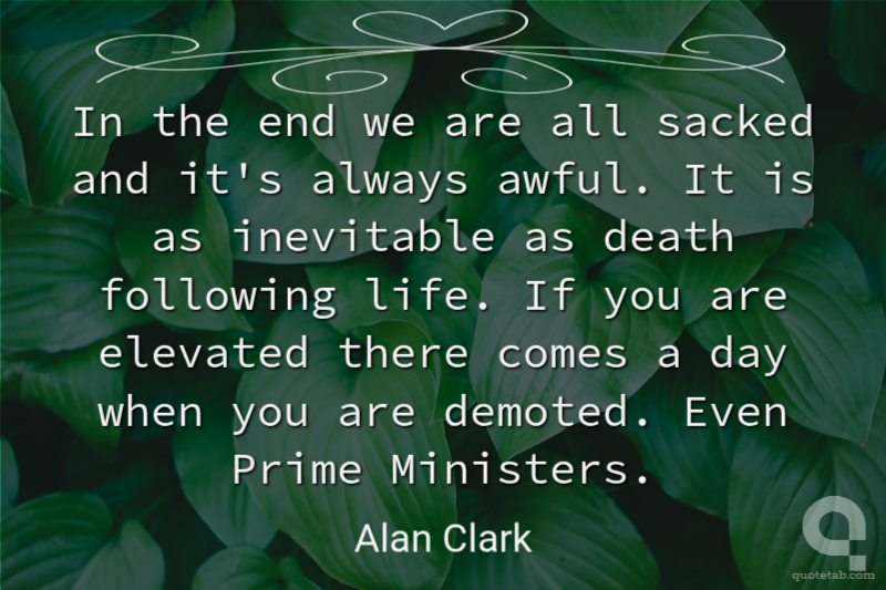 In the end we are all sacked and it's always awful. It is as inevitable as death following life. If you are elevated there comes a day when you are demoted. Even Prime Ministers. Alan Clark