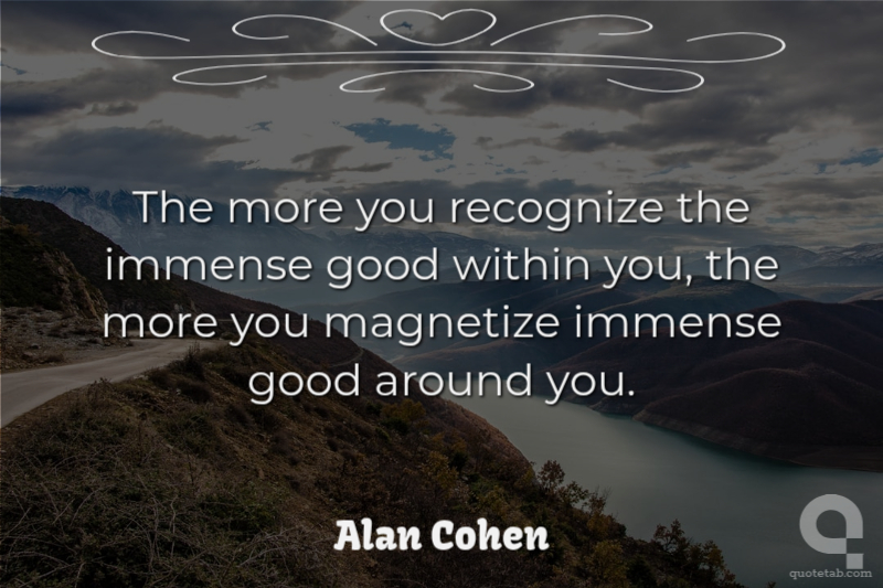 The more you recognize the immense good within you, the more you magnetize immense good around you. Alan Cohen