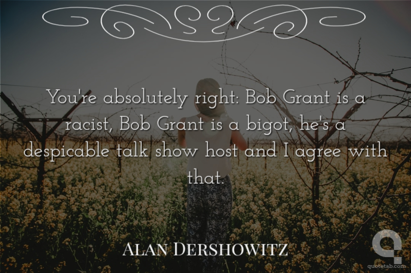 You're absolutely right: Bob Grant is a racist, Bob Grant is a bigot, he's a despicable talk show host and I agree with that. Alan Dershowitz