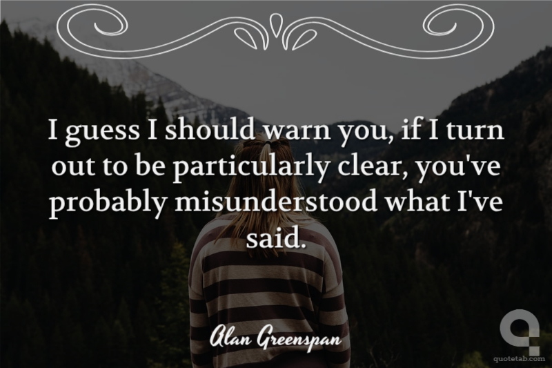 Since I've become a central banker, I've learned to mumble with great incoherence. If I seem unduly clear to you, you must have misunderstood what I said. Alan Greenspan