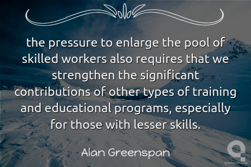 the pressure to enlarge the pool of skilled workers also requires that we strengthen the significant contributions of other types of training and educational programs, especially for those with lesser skills. Alan Greenspan