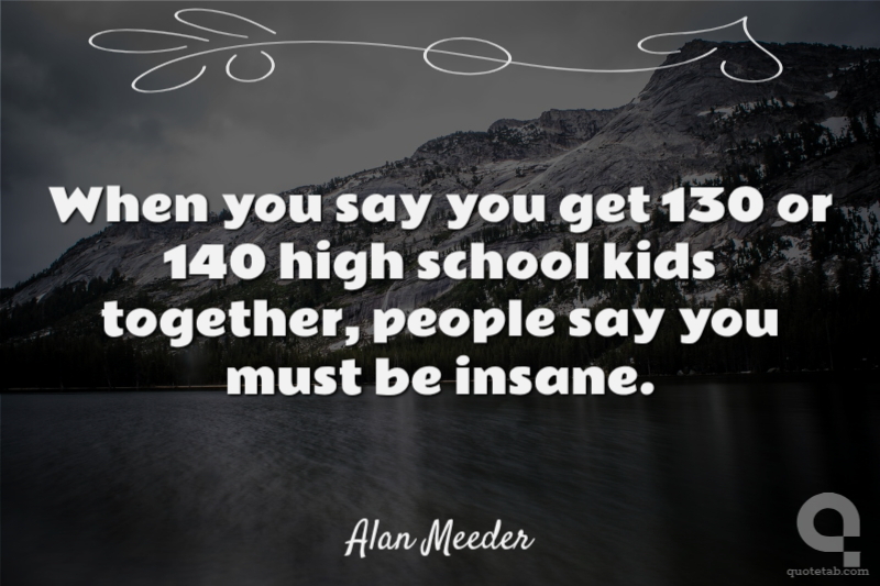 When you say you get 130 or 140 high school kids together, people say you must be insane. Alan Meeder