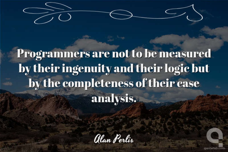 Programmers are not to be measured by their ingenuity and their logic but by the completeness of their case analysis. Alan Perlis