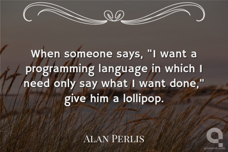 When someone says, "I want a programming language in which I need only say what I want done," give him a lollipop. Alan Perlis