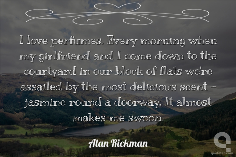 I love perfumes. Every morning when my girlfriend and I come down to the courtyard in our block of flats we're assailed by the most delicious scent - jasmine round a doorway. It almost makes me swoon. Alan Rickman