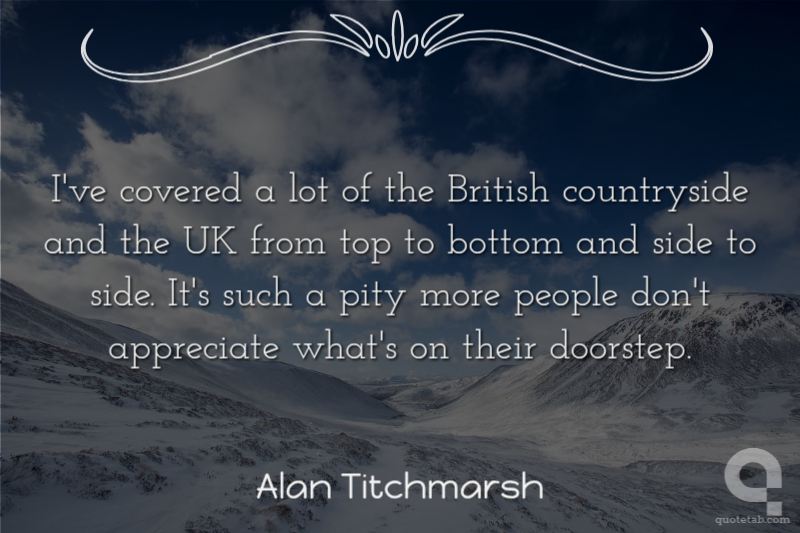 I've covered a lot of the British countryside and the UK from top to bottom and side to side. It's such a pity more people don't appreciate what's on their doorstep. Alan Titchmarsh