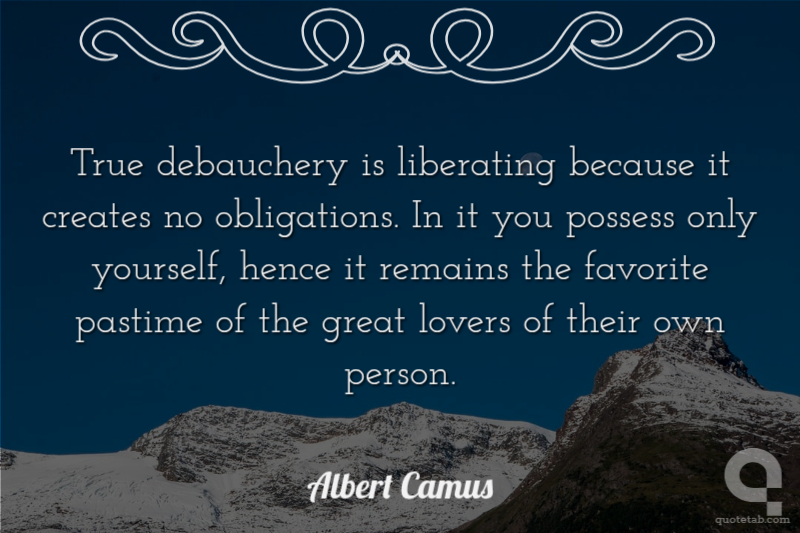 True debauchery is liberating because it creates no obligations. In it you possess only yourself, hence it remains the favorite pastime of the great lovers of their own person. Albert Camus