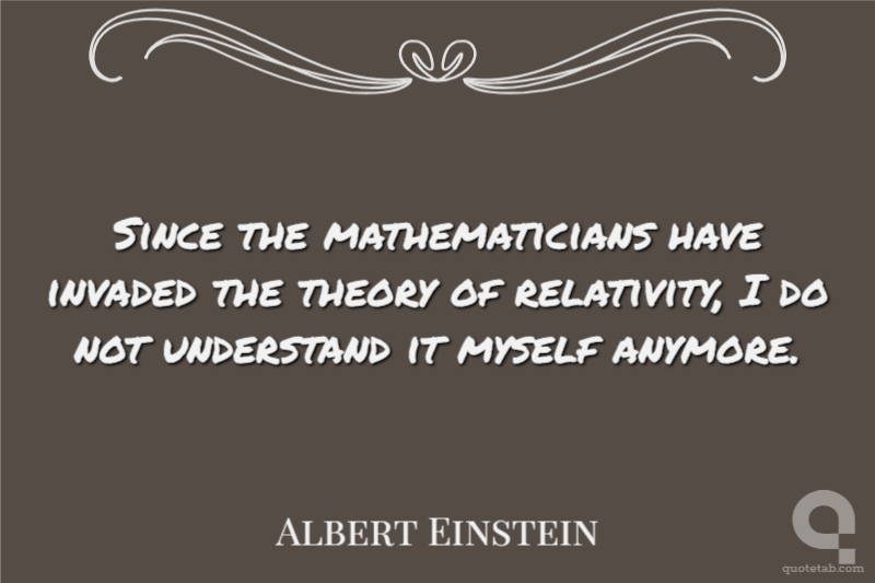 Since the mathematicians have invaded the theory of relativity, I do not understand it myself anymore. Albert Einstein