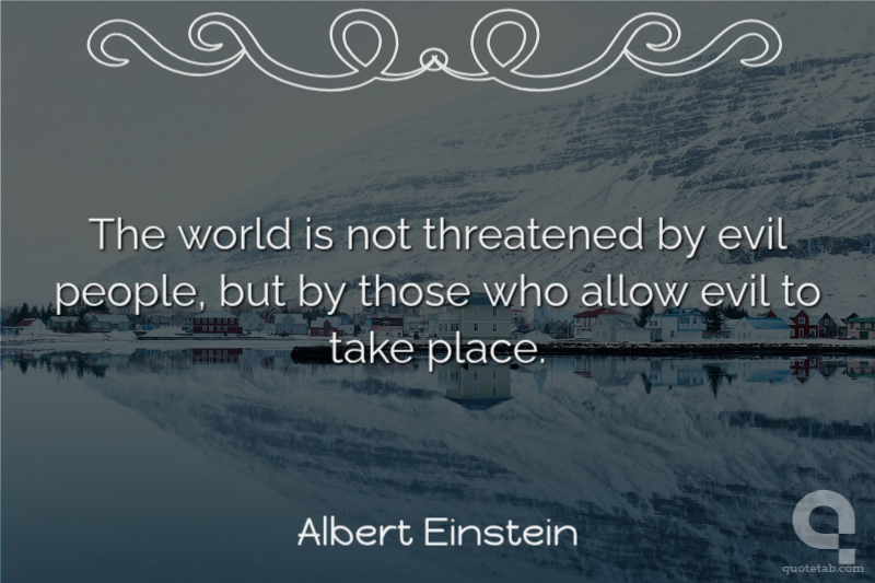 The world is not threatened by evil people, but by those who allow evil to take place. Albert Einstein