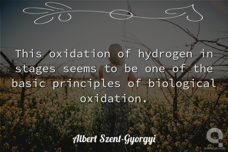 This oxidation of hydrogen in stages seems to be one of the basic principles of biological oxidation. Albert Szent-Gyorgyi