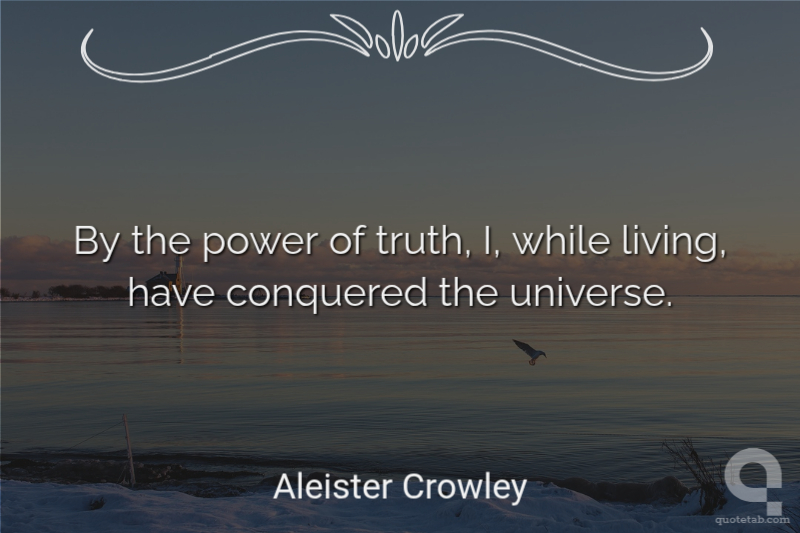 By the power of truth, I, while living, have conquered the universe. Aleister Crowley