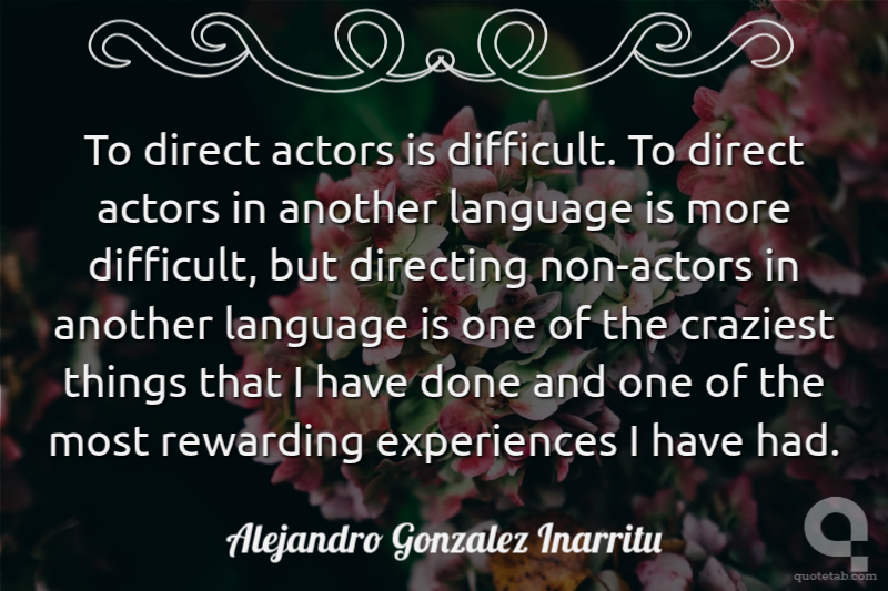 To direct actors is difficult. To direct actors in another language is more difficult, but directing non-actors in another language is one of the craziest things that I have done and one of the most rewarding experiences I have had. Alejandro Gonzalez Inarritu