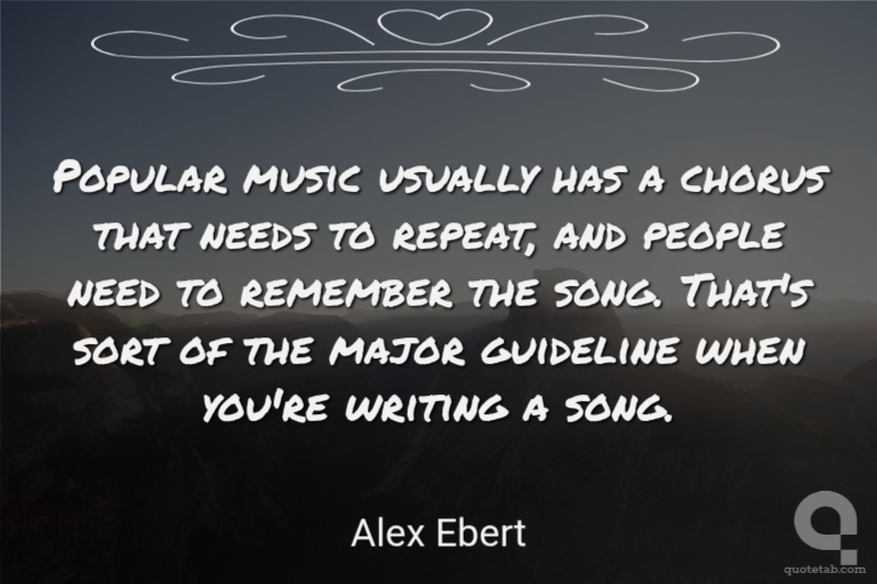 Popular music usually has a chorus that needs to repeat, and people need to remember the song. That's sort of the major guideline when you're writing a song. Alex Ebert