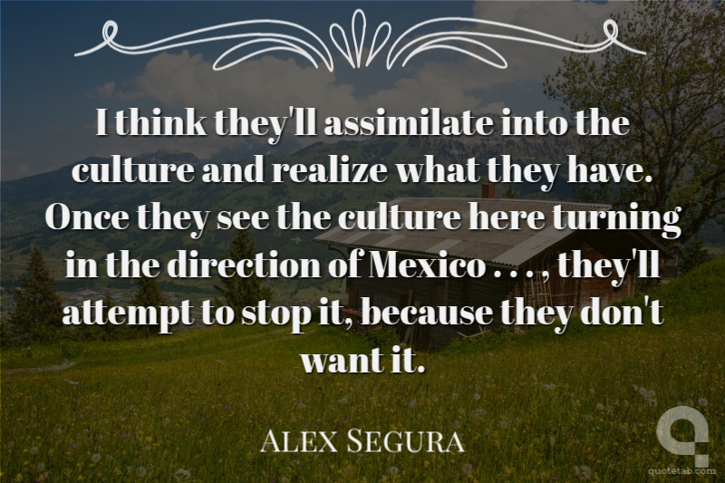 I think they'll assimilate into the culture and realize what they have. Once they see the culture here turning in the direction of Mexico . . . , they'll attempt to stop it, because they don't want it. Alex Segura