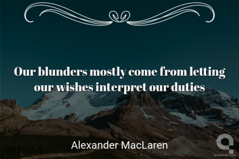 Our blunders mostly come from letting our wishes interpret our duties Alexander MacLaren