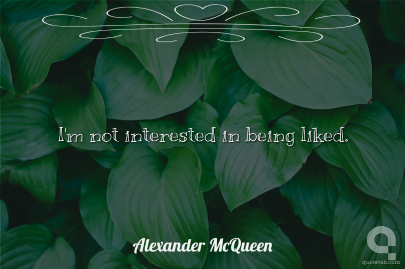 I'm not interested in being liked. Alexander McQueen