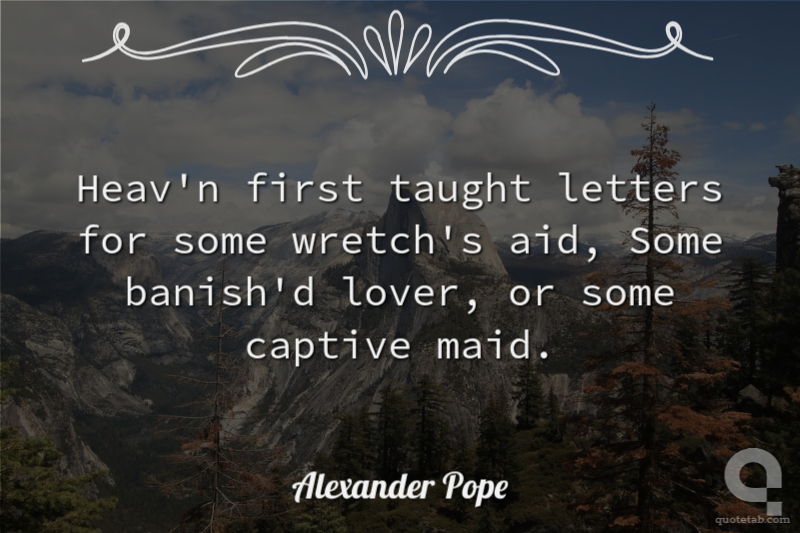 Heav'n first taught letters for some wretch's aid, Some banish'd lover, or some captive maid. Alexander Pope